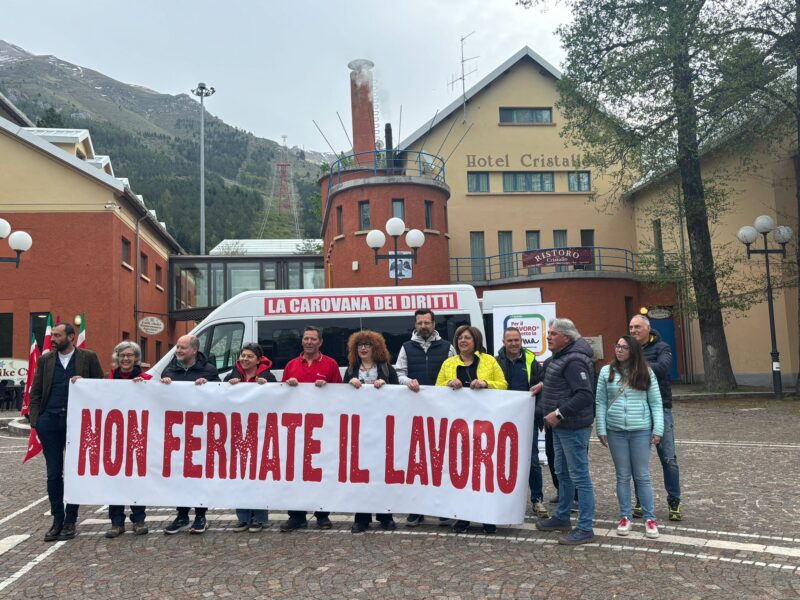 1° maggio a Fonte Cerreto per la Cgil e i lavoratori di varie vertenze sindacali. Un modo per portare l’attenzione, ancora una volta, sulla situazione della funivia ferma da oggi e sulla sorte dei lavoratori del centro turistico