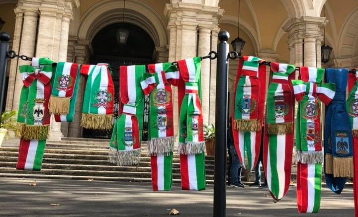 Questa mattina, 13 novembre, infatti, una delegazione di sindaci, in rappresentanza di tutti i colleghi laziali ed abruzzesi, è giunta, come previsto presso il Ministero delle Infrastrutture e Trasporti per un confronto, in programma alle ore 10, sulle tariffe dei pedaggi su A/24 e A/25 e sul problema della sicurezza della rete autostradale ma, appena hanno appreso che il ministro Danilo Toninelli non li avrebbe ricevuti, si sono tolti le fasce tricolori e le hanno appese proprio davanti alla sede ministeriale come si vede nella foto in basso.