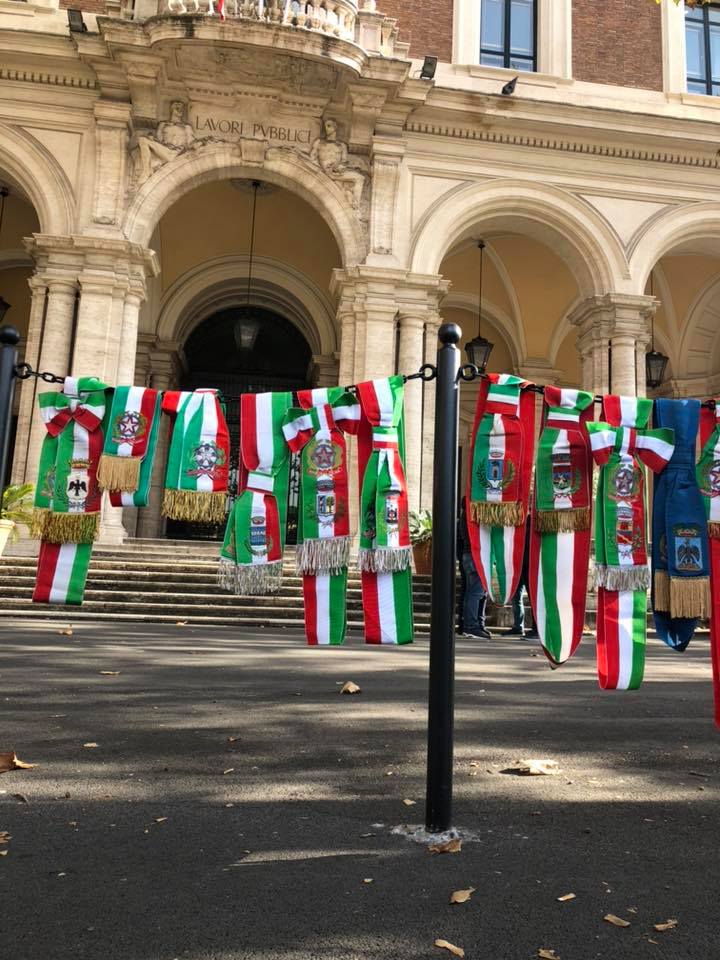 Questa mattina, 13 novembre, infatti, una delegazione di sindaci, in rappresentanza di tutti i colleghi laziali ed abruzzesi, è giunta, come previsto presso il Ministero delle Infrastrutture e Trasporti per un confronto, in programma alle ore 10, sulle tariffe dei pedaggi su A/24 e A/25 e sul problema della sicurezza della rete autostradale ma, appena hanno appreso che il ministro Danilo Toninelli non li avrebbe ricevuti, si sono tolti le fasce tricolori e le hanno appese proprio davanti alla sede ministeriale come si vede nella foto in basso.