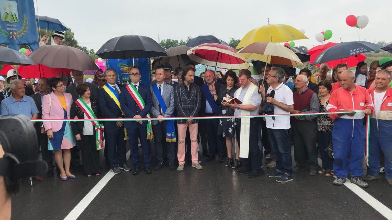 Lungo 110 metri, poggiato su tre campate, sismicamente isolato, assolutamente resistente e con minori obblighi di manutenzione. Un ponte che decongestionerà di molto la viabilità tra Città S.Angelo e Montesilvano e non solo. E’ questo solo il primo dei tre ponti che l’amministrazione provinciale di Pescara spera di inaugurare prima della fine dell’anno. Già entro fine giugno dovrebbe esserci un altro taglio del nastro, quello per il ponte nel territorio comunale di Montesilvano. L’altro, ancora più imponente, posto più a monte, dovrebbe essere varato nei prossimi mesi. Nella cerimonia di questa mattina unica ospite indesiderata la pioggia, per il resto strette di mano e ringraziamenti tra amministratori attuali e passati, come i due precedenti presidenti di Provincia De Dominicis e Testa che hanno accompagnato il complesso iter iniziato esattamente 20 anni fa quando l’allora presidente D’Alfonso cominciò a pensare insieme agli allora sindaci di Montesilvano Gallerati e di Città S.Angelo Catena, alla necessità di un rinforzo infrastrutturale in quell’area. I finanziamenti del Cipe e poi il problema dello sforamento del patto di stabilità, tanti gli ostacoli incontrati, fino all’apertura dei primi cantieri nel settembre del 2016: