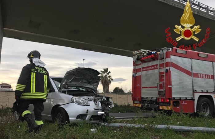 Una Squadra del Comando dei Vigili del Fuoco di Pescara è intervenuta in via Aterno, a Pescara, per un incidente stradale. Un’autovettura che percorreva la rampa che porta verso il Ponte Flaiano ha urtato un palo della pubblica illuminazione, crollato a terra. La donna che si trovava alla guida è stata trasportata dal 118 in ospedale, mentre la Polizia ha eseguito i rilievi del caso e il personale dei Vigili del Fuoco ha provveduto a mettere in sicurezza la zona. Fortunatamente solo tanto spavento ma nessuna conseguenza importante per la 56 enne di Pescara che conduceva la vettura.