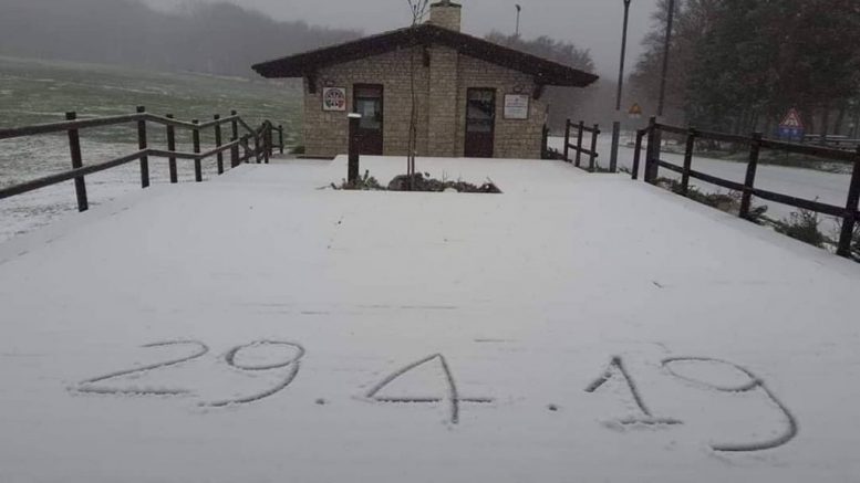 Due località su tutte: Ovindoli e Pizzoferrato per raccontare un fine aprile innevato e gelido. Da ieri mezzi spazzaneve in azione per la coltre bianca scesa copiosa con relativo abbassamento delle temperature. Altro che primavera: in Abruzzo da nord a sud, dalla costa alla montagna si battono i denti per una primavera dal sapore decisamente invernale. Per l’intero pomeriggio di ieri da Palena a Pescocostanzo, passando per Ovindoli, Roccaraso, Rocca di Mezzo e Montereale, stesso colpo d’occhio: neve, neve, neve! Un brusco calo delle temperature, accompagnato da venti gelidi e piogge, si è abbattuto sulla provincia aquilana. E non va meglio nel teramano dove sono stati i temporali a creare non pochi disagi con mezzi dei vigili del fuoco impegnati in sottopassi e garages. Piumini e scarpe da pioggia anche nella mite Pescara dove stamattina alle ore 7 sulle insegne luminose delle farmacie ha strappato qualche sorriso quel ‘martedì 30 aprile’ seguito da gradi 8. Tanto nella norma non dev’essere a giudicare dai titoli di molti articoli, oggi anche sulla stampa nazionale, come ad esempio: ‘Dalle Dolomiti ad Abruzzo e Molise, lo straordinario spettacolo della neve di fine Aprile sull’Italia’.