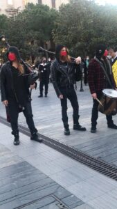 Speciale il colpo d’occhio offerto dalla protesta di oggi a Pescara: molti musicisti han portato il loro strumento così come ci sono leggii e abiti di scena. Tutti vestiti di nero, ma col rosso di un fiore che vuole rappresentare la speranza.