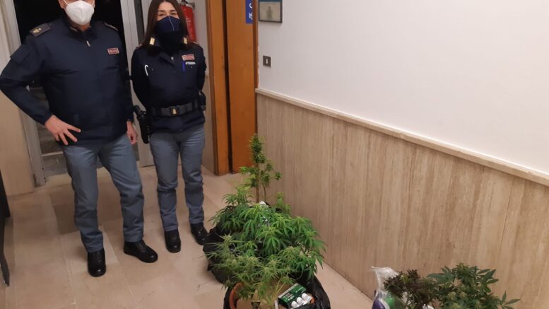 Durante la permanenza nell’appartamento, inoltre, i poliziotti hanno avvertito un forte odore di marjuana e, da un accurato controllo, hanno scoperto, all’interno della camera da letto dell’arrestato, una piccola serra artigianale costruita nei pressi della finestra, completa di lampade, un sistema di ventilazione e fertilizzanti per la coltivazione. La perquisizione della stanza ha permesso ai poliziotti di sequestrare 3 flaconi di fertilizzante; 8 piante di marijuana alte circa 30/35 cm di cui 5 in avanzato stato di fioritura e un bilancino di precisione. L’uomo, pertanto, dovrà rispondere anche per i reati di coltivazione e detenzione ai fini di spaccio di sostanza stupefacente.