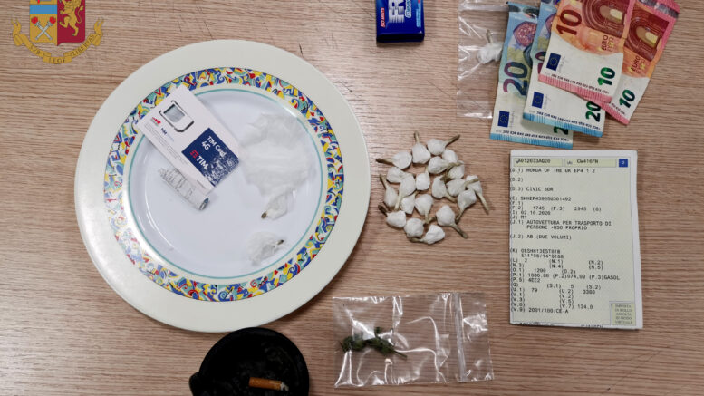 Il 36enne tunisino è risultato privo di patente: con lui in auto un 22enne di nazionalità albanese. All’alt degli agenti i due hanno cercato di disfarsi di una scatola metallica, ma gli agenti che avevano intuito la mossa l’hanno recuperata: al suo interno sono state trovate 11 confezioni di cocaina per un peso complessivo di circa 11.5 grammi, ed un piccolo quantitativo di sostanza del tipo marjuana.