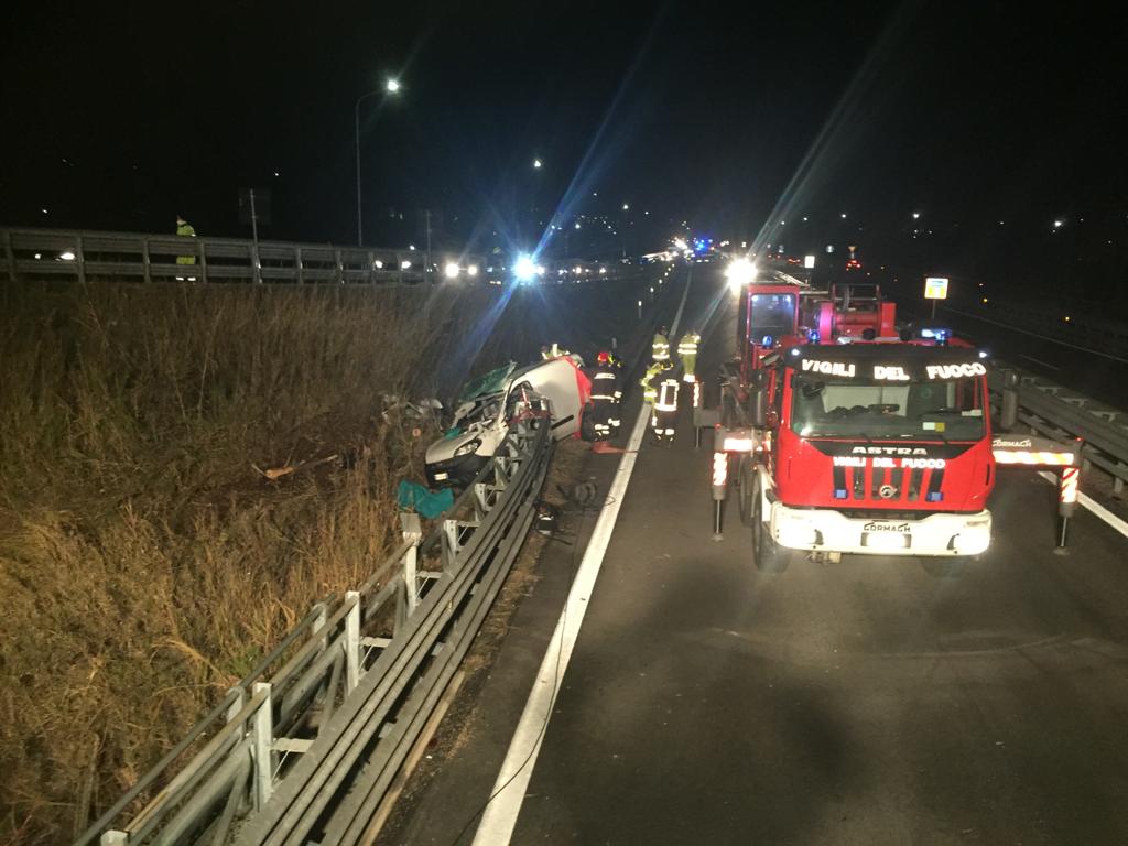 Poco dopo le 17:00, una squadra dei vigili del fuoco di Teramo è intervenuta sulla superstrada Teramo-mare”, variante alla SS80, per un incidente stradale mortale. Nell’incidente, avvenuto poco dopo l’uscita di Sant’Atto, sono rimasti coinvolti due Fiat Doblò appartenenti alla stessa ditta. I due mezzi, che stavano percorrendo la superstrada in direzione Teramo, si sono scontrati per cause in corso di accertamento da parte della Polizia Stradale intervenuta sul posto. Uno dei due Doblò, condotto da un dipendente della ditta 23enne, è finito nella scarpata ribaltandosi sul lato dell’autista. L’altro mezzo, con alla guida un altro dipendente della ditta 24enne, ha impattato violentemente contro il guardrail che si è infilato all’interno dell’abitacolo. I vigili del fuoco e i sanitari hanno soccorso il ragazzo alla guida del mezzo terminato nella scarpata che è stato trasportato all’ospedale di Teramo con un’ambulanza del 118. Non c’è stato invece niente da fare per l’altro ragazzo che i vigili del fuoco hanno estratto dal Doblò utilizzando le cesoie e divaricatori idraulici.