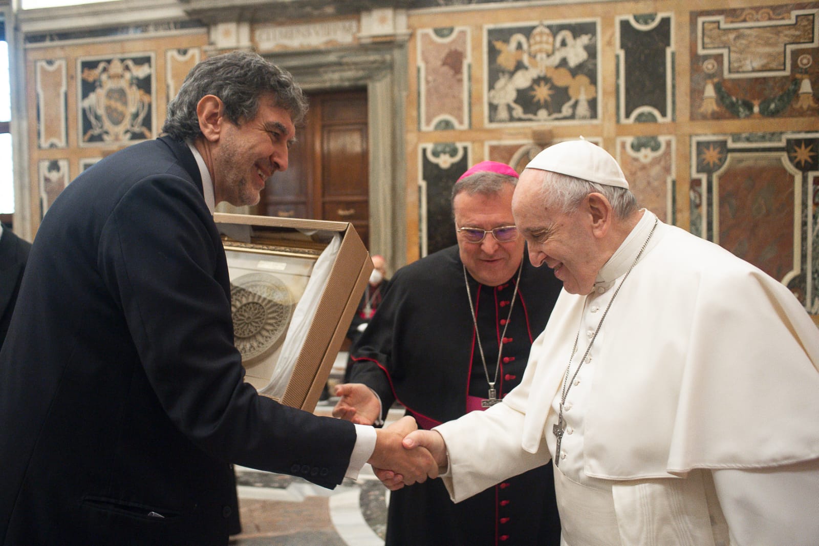 Con l’occasione, il Presidente Marsilio ha recato in dono una riproduzione del rosone della Basilica di Collemaggio dell’Aquila. Nel ringraziare il Sommo Pontefice per il previlegio concesso ha auspicato quanto prima di poter ospitare in Abruzzo il Santo Padre.