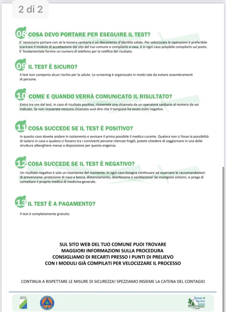 In ogni comune verranno allestite delle postazioni dove saranno effettuati i test rapidi. A seguire trovate tutte le indicazioni predisposte dalla Regione in collaborazione con i comuni e la Asl di riferimento.