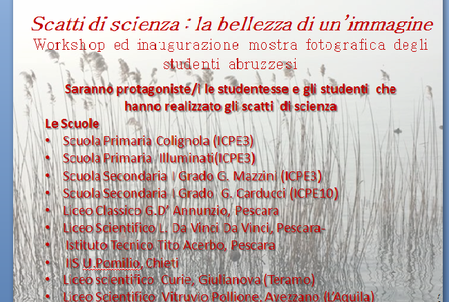 Torna al Museo delle Genti d’Abruzzo “Scatti di Scienza” la mostra organizzata da Scienza under 18 Pescara con le fotografie realizzate dai ragazzi delle scuole coinvolte nel progetto.