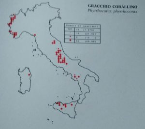 Dallo studio è emerso che in Abruzzo, dove è presente una delle maggiori concentrazioni europee di siti di riproduzione, con circa 500 coppie, il calo di nidificazioni è stato complessivamente, seppur con diversità tra singole aree della regione, tra il 50 e il 60% tra il 1993 e il 2019. Anche se mancano studi specifici, la causa di questo decremento potrebbe essere in larga parte dovuta alle trasformazioni ambientali in corso, con la perdita di aree a pascolo a favore degli arbusteti prima e del bosco poi, per l’abbandono delle attività agricole nelle aree pedemontane della regione. Il Gracchio corallino è una specie strettamente connessa ad aree aperte come i pascoli, dove ricerca gli invertebrati di cui in buona parte è costituita la sua dieta. In periodo autunnale e invernale mangia, però, anche olive cadute per terra, per cui l’abbandono degli oliveti a quote tra 500 e 800 metri potrebbe aver contribuito al declino della specie assieme, forse, ad altri fattori come il turismo incontrollato.
