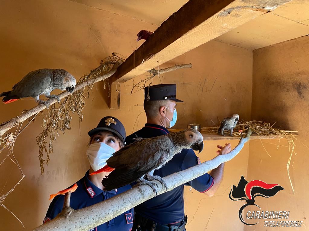 Gli animali esotici, a rischio estinzione, erano detenuti in due voliere : sprovvisti di documentazione, sono stati sequestrati dai Carabinieri Forestali di Lanciano.