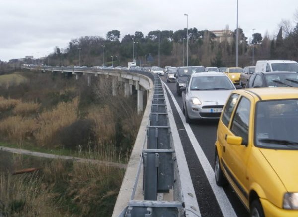 Lunghe code e traffico paralizzato nelle prime ore del mattino, sulla variante Montesilvano-Francavilla, nei pressi dello svincolo Pescara Colli.