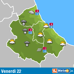 Previsioni meteo Abruzzo 22 gennaio: giornata di nubi e schiarite sul litorale mentre nelle zone montane non sono escluse deboli nevicate.