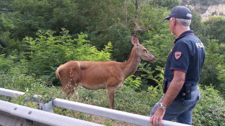 Il cervo è stato tratto in salvo dal personale della Squadra Volante del Commissariato di Sulmona lungo la strada statale 17, nei pressi di Pettorano sul Gizio, il borgo situato all’interno dell’area protetta del Monte Genzana Alto Gizio e per questo tutelato da vincoli precisi inserendosi in una riserva naturale.