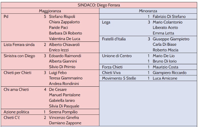 Un vero e proprio ribaltone elettorale rispetto alle proiezioni dell’immediato post primo turno di voto del settembre scorso. Ferrara, neo sindaco del capoluogo teatino, ha vinto con i voti di Pd, Chieti per Chieti, La Sinistra con Diego, Ferrara sindaco, Chieti c’è, Chi ama Chieti, Azione Politica, La Teatinità; appoggio esterno M5s.