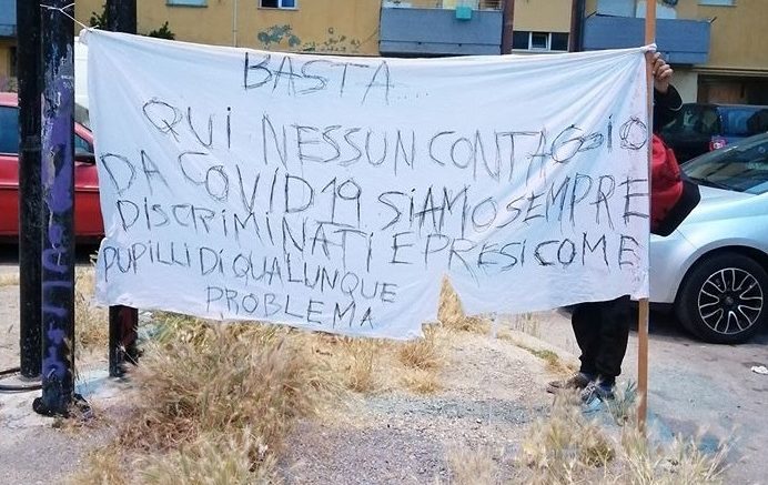 Due striscioni, apparsi questa mattina nel quartiere Rancitelli di Pescara, esprimono la reazione violenta di una parte della popolazione alle notizie sui contagi di persone della comunità Rom che hanno preso parte al funerale di Campobasso. “Basta attaccarci giornalista terrorista” e “Qui nessun contagio da Covid-19, siamo sempre discriminati”: è il contenuto dei due striscioni apparsi stamani nel quartiere Rancitelli di Pescara. Del rione – considerato la principale piazza dello spaccio abruzzese e spesso finito alla ribalta nazionale per fatti di cronaca – negli ultimi giorni si è tornato a parlare per la presenza di alcune persone risultate positive al Covid-19 dopo aver partecipato ad un funerale in Molise da cui sono partiti numerosissimi contagi, una ventina dei quali a Vasto (Chieti). Sugli striscioni, che sono stati rimossi, sono in corso indagini da parte delle forze dell’ordine. Quattro, secondo i dati della task force della Regione Abruzzo, le persone risultate positive nel quartiere. I contagi, che risalirebbero ad alcuni giorni fa, sarebbero circoscritti e sotto controllo. Sulla questione era intervenuto, lanciando l’allarme, anche un comitato di quartiere. Il sindaco di Pescara, Carlo Masci, ha chiesto alla Prefettura una vigilanza particolare nell’area.