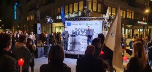 Sul palco allestito in piazza Salotto i simboli di tutte le associazioni di categoria del commercio abruzzese legate dallo slogan scelto per la manifestazione di oggi “Io scendo in piazza”. Tante le forze dell’ordine ma tanta anche la compostezza di chi ha deciso di sposare la causa di chi dice no all’ultimo Dpcm e a quanto ha disposto. Palpabile la rabbia sui volti delle persone in corteo: accanto ai commercianti davvero molte altre categorie lavorative piegate dalla crisi. Partite iva, piccoli imprenditori, artigiani ma anche tanti cittadini semplici ai quali sono state donate delle fiaccole rosse affinché la piazza più rappresentativa di Pescara restituisse anche all’occhio più distratto il colpo d’occhio di una battaglia comune a molti.