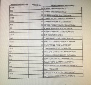 1° Premio una Bicicletta elettrica di nuova generazione, offerta da FAIETA Moto che, da anni, sostiene L’ADRICESTA, nelle sue innumerevoli iniziative solidali. Vi preghiamo gentilmente di aiutarci a pubblicizzare i numeri estratti, per consentire a coloro che li hanno acquistati, di poterli ritirare con il tagliando, presso la sede ADRICESTA, sita nell’atrio Degenti e Accettazione dell’Ospedale Civile di Pescara on Via Fonte Romana, telefonando prima per accordare il ritiro, allo 085.20.56.770 ed aperta dalle 09.30 alle ore 12.30 e dalle 15.30 alle 18.00.