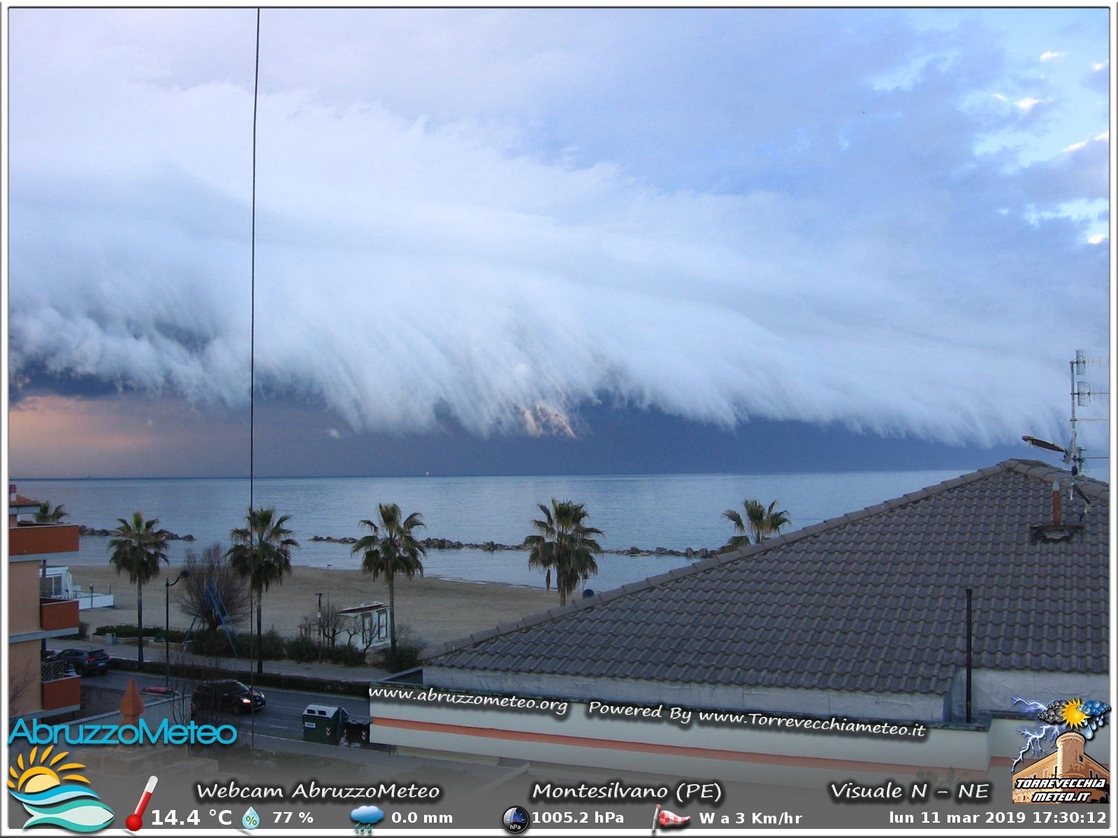 Defininte “Shelf Cloud”, ovvero nubi a mensola, queste nuvole sono tipiche di un temporale – ci spiega Giovanni De Palma nelle cui previsioni c’è “un ulteriore peggioramento con venti in rinforzo, rovesci, possibilità di temporali e neve a quote relativamente basse”.