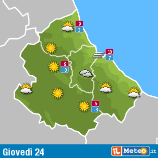Nel teramano, nubi sporadiche e nebbie al mattino. Vento da Ponente con intensità di 3 km/h. Raffiche fino a 12 km/h. Temperature comprese tra 3°C e 9°C . Zero termico a 2650 metri.