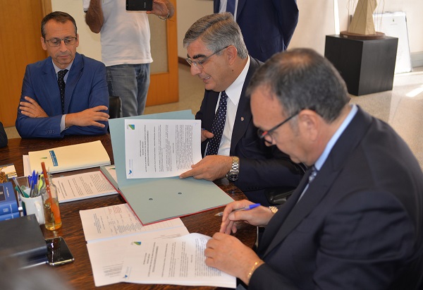L’accordo, sottoscritto oggi pomeriggio, nella sede di Pescara della Regione Abruzzo, è stato firmato dal presidente Luciano D’Alfonso e dal presidente dell’Autorità portuale, Rodolfo Giampieri. “E’ un atto di collaborazione che serve a rende scorrevole il quadro degli investimenti che abbiamo previsto per i porti di Pescara e Ortona – ha osservato il presidente della Regione Luciano D’Alfonso -. Sono opere che mirano a migliorare il nostro patrimonio portuale e garantire la funzionalità dell’economia del mare. Questo protocollo – ha aggiunto ancora D’Alfonso – ha l’obiettivo di includere tutte le attività di investimento avviate da noi nella nuova governance territoriale dell’Autorità portuale del Mare Adriatico. Penso, ad esempio, al taglio della diga foranea, all’allungamento dei moli e alla messa in esercizio del piano regolatore portuale. E poi ci sono le iniziative che riguardano la promozione dell’arrivo di nuovi vettori che sono interessati ai nostri scali”. “Sono molto soddisfatto per questo protocollo – ha concluso D’Alfonso – perché rende sinergico i rapporti tra Regione e Autorità portuale”. Il direttore portuale, Rodolfo Giampiero, che ha sottoscritto il protocollo, ha aggiunto: “E’ un accordo mirato a mettere in moto gli investimenti della Regione Abruzzo con risorse nazionali ed europee che il presidente D’Alfonso ha cercato e ottenuto – ha sottolineato Giamperi -. Un atto formale, ma concreto, che ha l’obiettivo di rendere operativi gli investimenti infrastrutturali indispensabili per il porto di Pescara e di Ortona, lavori che serviranno a rendere competitivi e integrati le due infrastrutture nella strategia dell’Autorità di sistema portuale. E’ dimostrazione che le istituzioni, inoltre, quando collaborano insieme, riescono ad ottenere grandi risultati”. All’incontro hanno preso parte anche il consigliere regionale con delega ai trasporti, Camillo D’Alessandro, e l’imprenditore Riccardo Padovano.