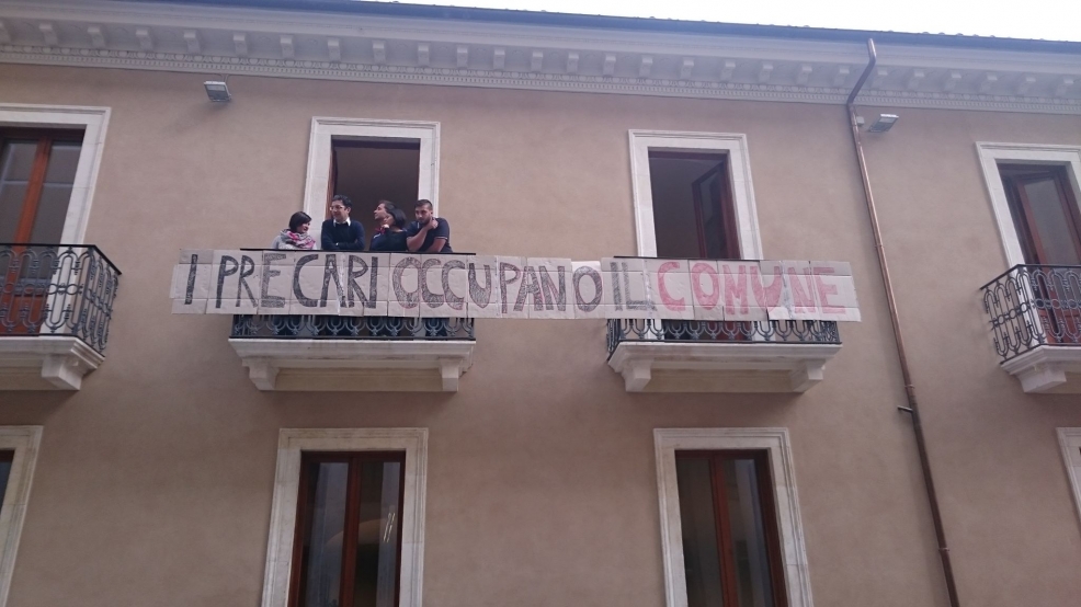 Dopo l’assemblea di ieri mattina e l’ennesima fumata nera, i 56 precari della ricostruzione sono tornati ad occupare Palazzo Fibbioni a L’Aquila.