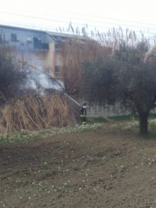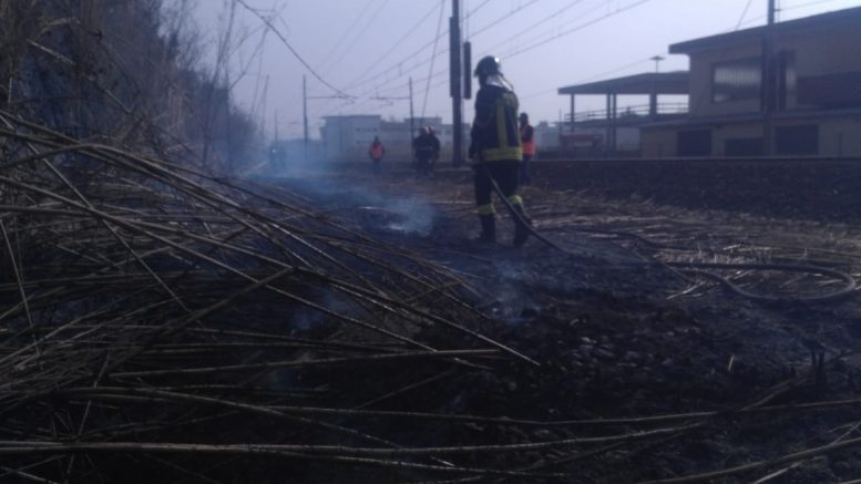 Vigili del fuoco al lavoro, questa mattina a Silvi Marina in zona EXPO 2000, per le fiamme che hanno interessato alcune sterpaglie di un canneto lungo la linea ferroviaria Bologna-Taranto. Rallentamenti al traffico ferroviario.