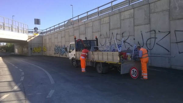 Se sarà l’ennesimo mese di passione si saprà solo nelle prossime ore, quel che è certo fin qui è che saranno trenta giorni di lavori in corso sul Ponte della libertà (meglio noto come ponte di Capacchietti). Stamattina addetti stavano già posizionando la relativa segnaletica lungo la carreggiata in chiusura. Da precisare che la rampa inversa, via del Circuito-via Aterno, resterà comunque aperta, e sarà possibile percorrerla nel doppio senso di marcia. Le relative modifiche alla circolazione sono contenute nell’ordinanza emessa dal Comune di Pescara, entrata in vigore da oggi, e illustrata dall’assessore ai lavori pubblici Enzo Del Vecchio: