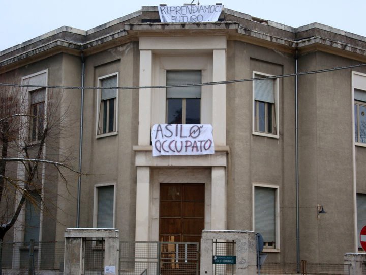 Il giovane è colui che avrebbe fornito la droga alla ragazza, la quale poi l’avrebbe spacciata in città, anche all’interno dell’asilo, in almeno sei occasioni. Fondamentale, ai fini dell’inchiesta, oltre alle intercettazioni, anche la testimonianza dei ragazzi frequentatori dell’asilo occupato. La struttura è un ex asilo dichiarato inagibile dopo il sisma del 2009 e adiacente a quello che un tempo era – e che tornerà presto a essere grazie ai lavori di ricostruzione – uno dei più grandi centri sociali cittadini per gli anziani. Luogo occupato abusivamente, ma tollerato dall’amministrazione comunale e difeso da buona parte della comunità come spazio necessario di aggregazione.