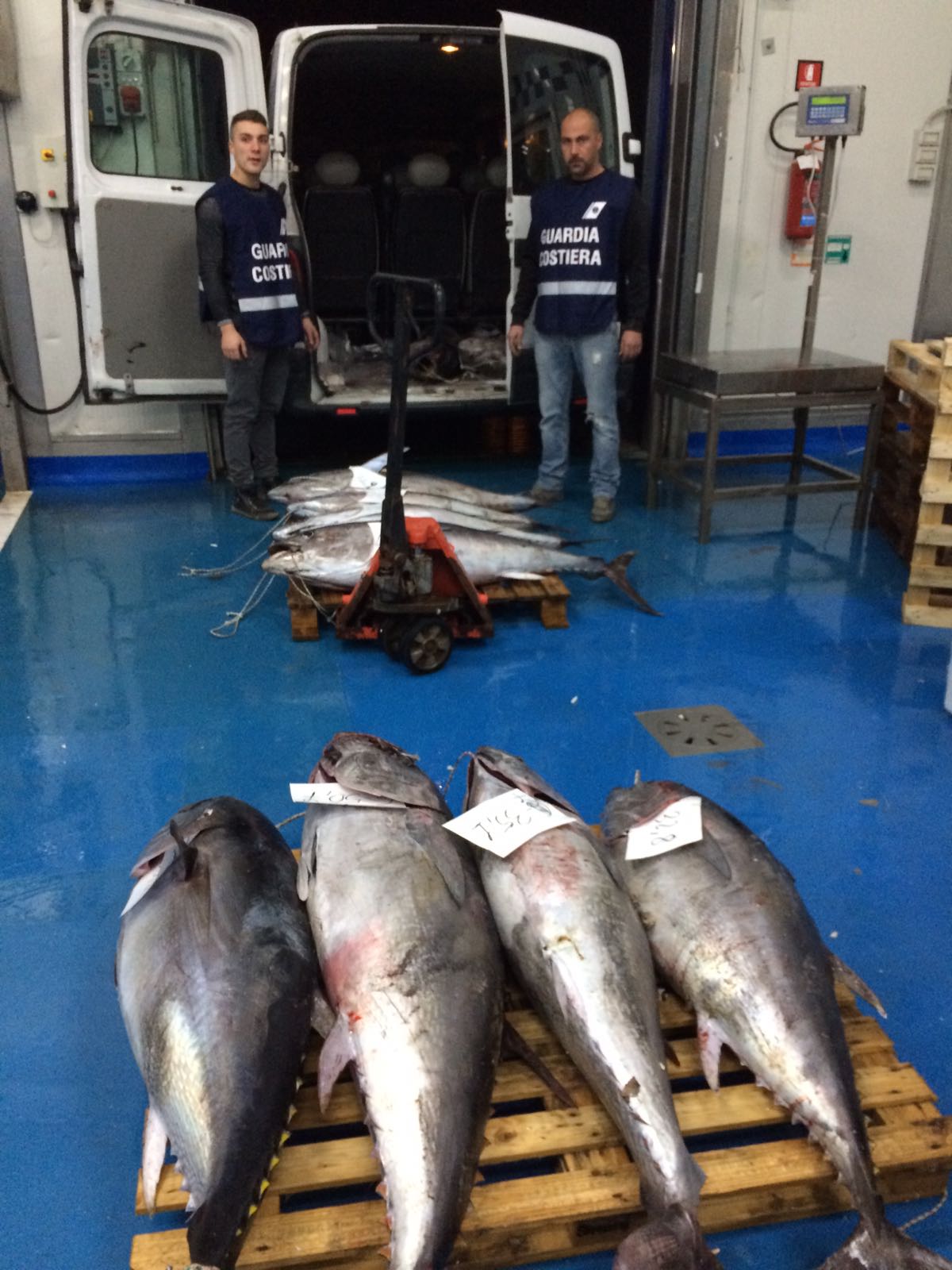 La Guardia costiera di Pescara ha sequestrato 17 esemplari di tonno rosso del peso di 576 kg. I controlli continuano.