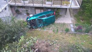 Spettacolare incidente, fortunatamente senza gravi conseguenze, a Montesilvano: un 22 enne, perde il controllo di una Fiat Punto e dopo un volo di 2 metri finisce nel cortile di un’abitazione.