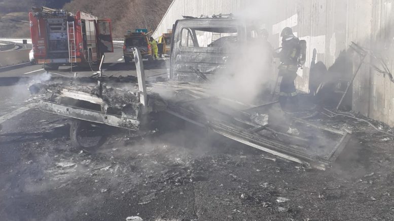 Un furgone è stato distrutto da un incendio sull’Autostrada A24, al Km 129, in direzione Roma, poco prima del traforo del Gran Sasso.