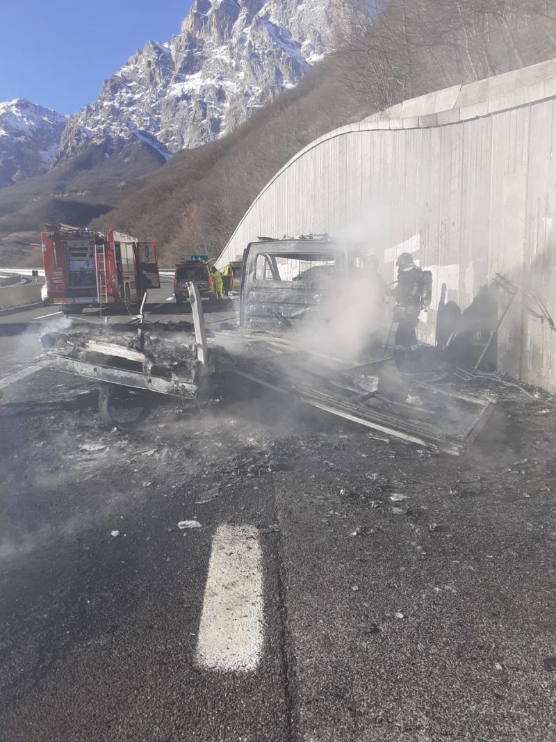 Un furgone è stato distrutto da un incendio sull’Autostrada A24, al Km 129, in direzione Roma, poco prima del traforo del Gran Sasso.