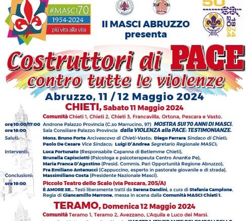 Il MASCI, Movimento Adulti Scout Cattolici Italiani, festeggia il 70° anniversario della sua costituzione. Lo sta facendo con una staffetta partita nello scorso mese di aprile che giungerà l’11 maggio a Chieti e il 12 maggio a Teramo