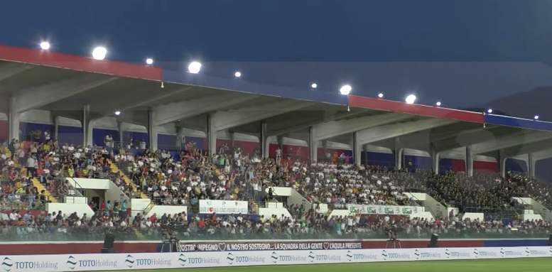 Lo stadio ‘Gran Sasso d’Italia- Acconcia’ gremito, ieri sera, per la ‘Partita del Cuore’ tra Nazionale Cantanti e Nazionale Politici