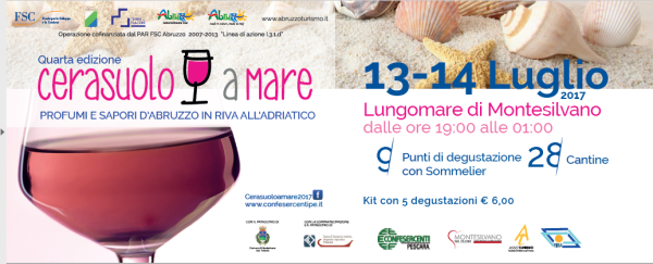 Il 13 e il 14 luglio a Montesilvano si terrà la quarta edizione di “Cerasuolo a Mare” per degustare vini e prodotti tipici abruzzesi di qualità.
