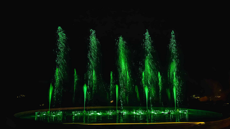 La fontana musicale, a forma di ellisse, è composta da 11 giochi d’acqua principali, con 451 ugelli, ognuno dotato di propria pompa per il funzionamento indipendente. I vari giochi d’acqua arrivano fino a 40 metri di altezza, sincronizzati con i brani musicali a piacere.