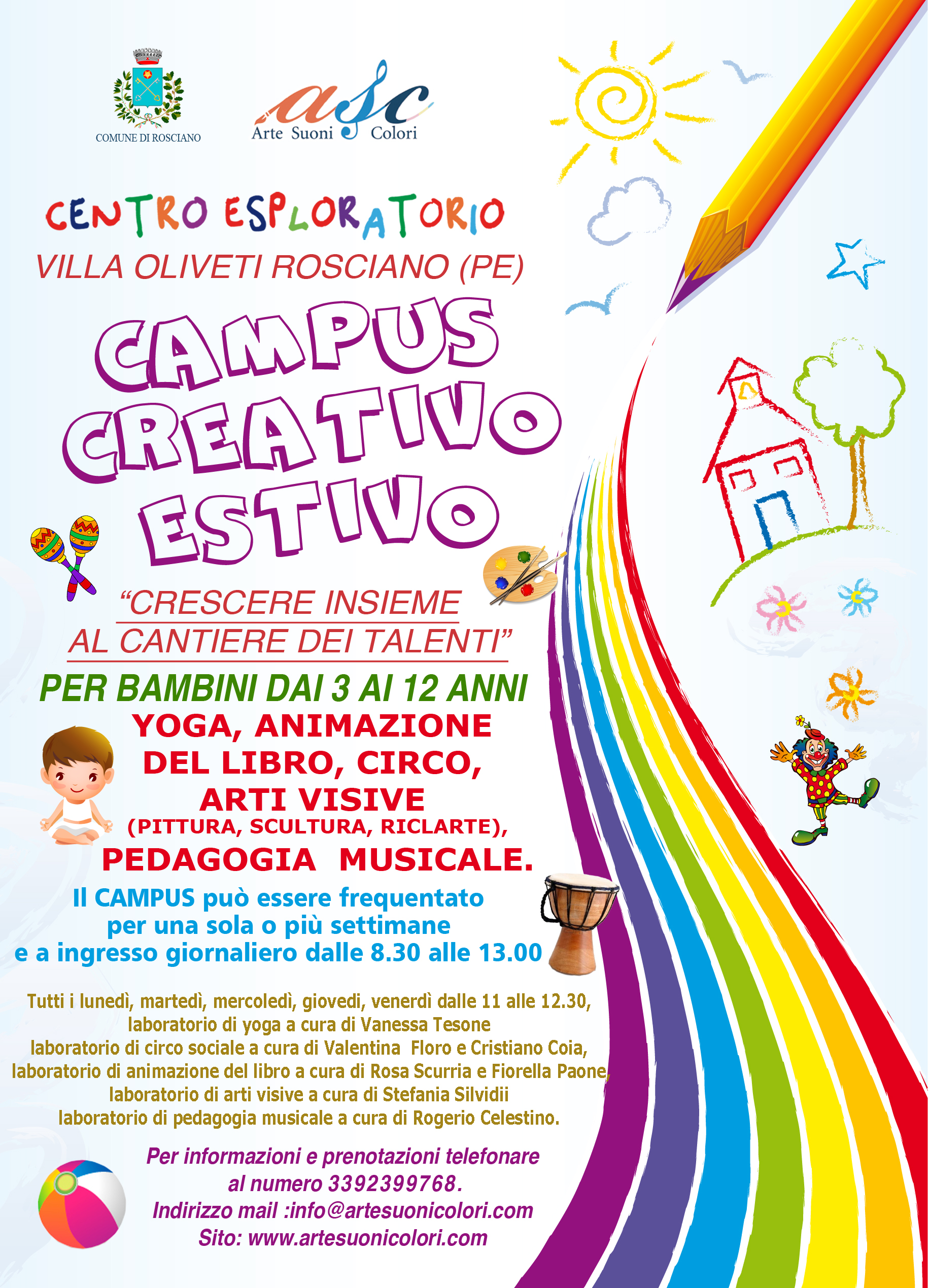 E’ giunta alla tredicesima edizione di “Vivi il tuo spazio”, la rassegna di laboratori artistici organizzata dall’associazione “Arte Suoni Colori” di Rosciano. L’iniziativa è partita nel 2004 nel comune di Rosciano e nel corso degli anni è stata realizzata con successo in diversi comuni della provincia di Pescara, Chieti e L’Aquila coinvolgendo i bambini delle scuole dell’infanzia, delle scuole primarie e secondarie.