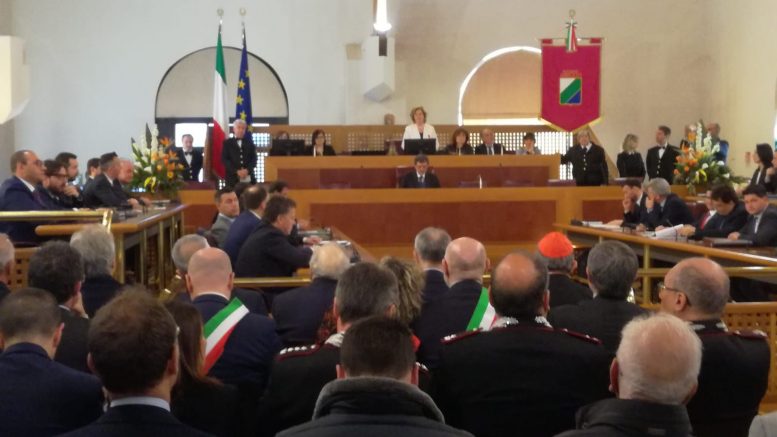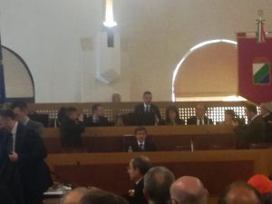 Nell’Aula “Sandro Spagnoli” del palazzo dell’Emiciclo a L’Aquila, questa mattina, prima seduta del Consiglio regionale dell’Abruzzo che inaugura l’undicesima legislatura. Sospiri eletto presidente.
