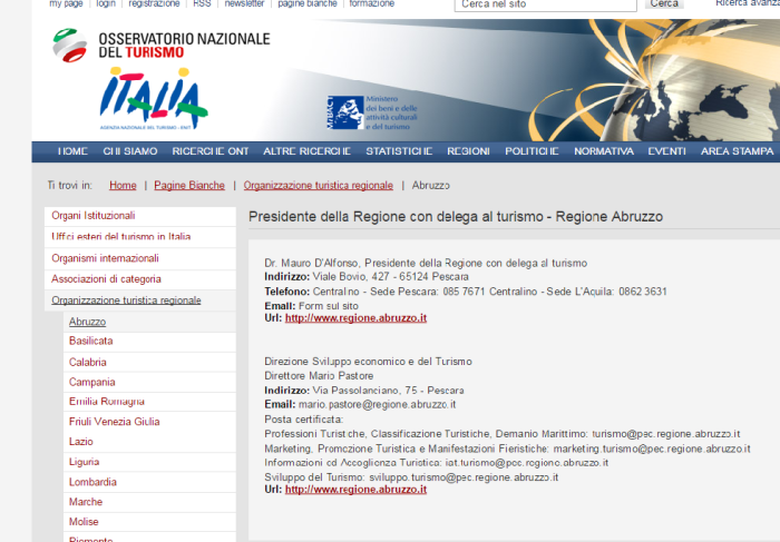 Ogni tanto capita, vai a cercare qualcosa in rete e qualcos’altro ti balza agli occhi come una nota stonata. Stavolta l’errore arriva dall’osservatorio nazionale del turismo: in Abruzzo, per l’Enit, il presidente è Mauro D’Alfonso.