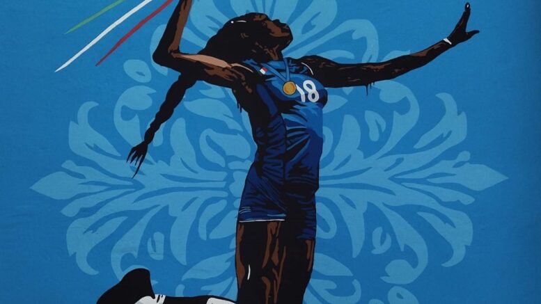 Laika ha ricreato il suo murale antirazzista dedicato alla campionessa di pallavolo Paola Egonu dopo la vittoria delle Olimpiadi della squadra italiana.