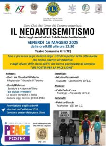 “Il neo antisemitismo. Dalle Leggi razziali all’art. 3 della Carta Costituzionale” è il titolo dell’incontro formativo e culturale che si terrà il 16 maggio al teatro comunale di Atri