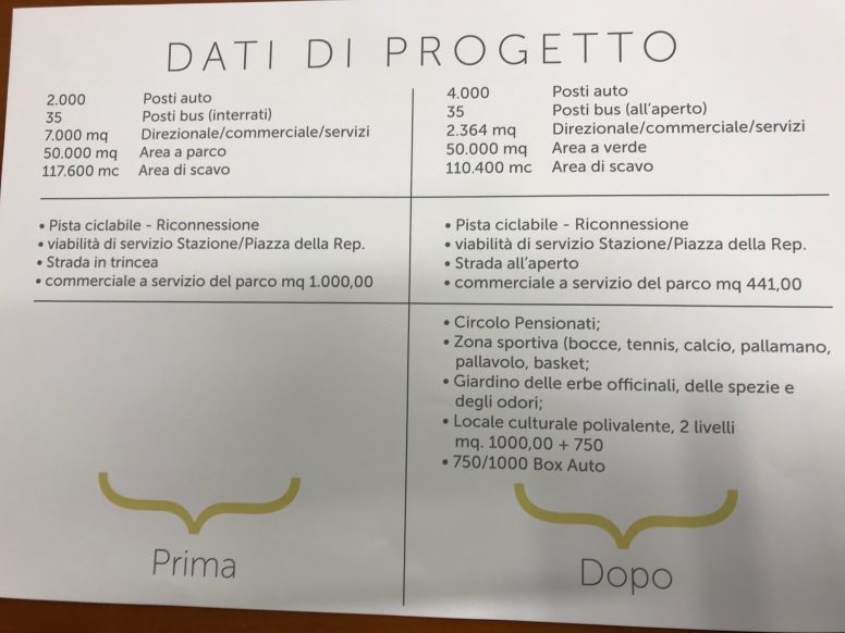 Più posti auto in moduli sopraelevati ad impatto zero, un’area direzionale commerciale e di servizi di circa 5000 Mq più piccola, impianti sportivi e tanto altro ancora.