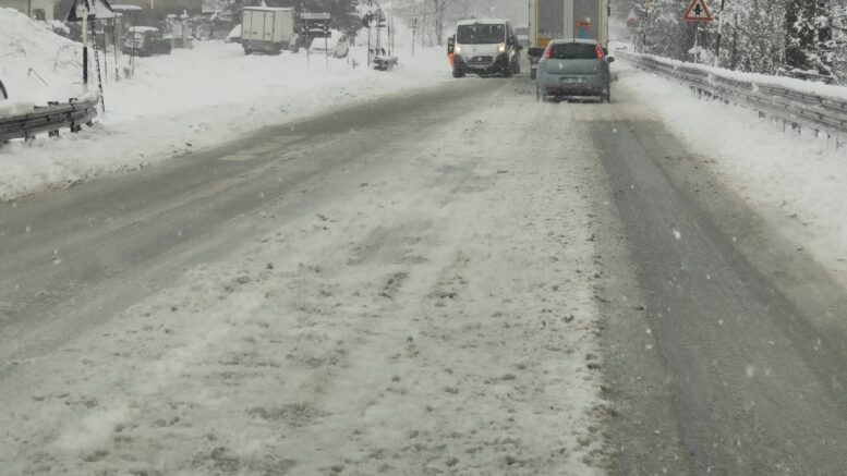 Traffico a rilento sull’Altopiano delle Cinquemiglia della statale 17 a causa dell’ondata di maltempo che si è abbattuta su gran parte dell’Abruzzo