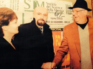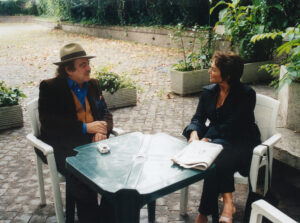 E’ scomparsa prematuramente il 31 gennaio del 2020 ma ha lasciato un segno indelebile in coloro che hanno avuto il privilegio di conoscerla e di poter collaborare con lei. Nella prima foto in basso è con Dario Fo e nella seconda foto con Bruno d’Arcevia, fondatore della Nuova Maniera italiana, nel giardino dell’atelier romano del maestro.