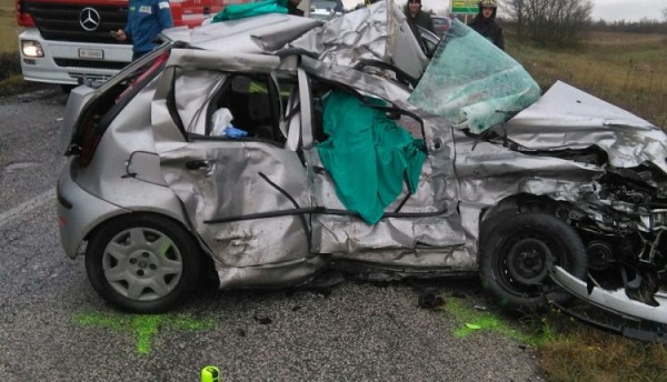 Potrebbe essere stata la strada resa scivolosa dalla pioggia e in curva a causare la tragedia, avvenuta intorno alle ore 9, nella frazione di Antrosano di Avezzano. Una donna di 58 anni, Maria Giovanni Gentile, residente a Magliano dei Marsi e madre dell’ex consigliere provinciale Pasqualino De Cristofaro, era alla guida di una Fiat Punto e stava percorrendo la strada provinciale 125 che collega Cappelle dei Marsi ad Antrosano, quando si è scontrata frontalmente con un grosso camion che trasportava ghiaia ed è morta sul colpo. La parte anteriore della Punto è andata distrutta mentre il mezzo pesante è finito fuori strada, probabilmente nell’ultimo disperato tentativo del camionista di evitare l’impatto. Sul posto sono intervenuti i Carabinieri della locale stazione, gli agenti della Polizia Locale ed i Vigili del Fuoco di Avezzano, che hanno estratto il corpo dalle lamiere.