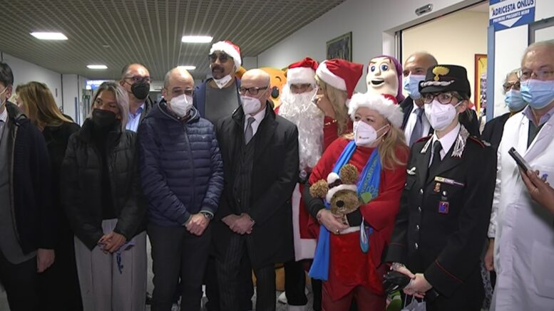 Anche quest’anno Graziano Lozzi ha indossato i panni del Babbo Natale Carabiniere e ha portato doni e sorrisi ai bimbi ricoverati in Chirurgia Pediatrica ed Oncologica, Pediatria e Onco-Ematologia Pediatrica insieme ai militari dell’Arma guidati dal comandante della Compagnia di Pescara, maggiore Monica Dallari, e alle mascotte dei Cartoni della Gadoo Eventi. I giocattoli sono stati raccolti grazie al lavoro dei volontari dell’Adricesta e dei Carabinieri di Pescara e al supporto della Lisciani Giochi.