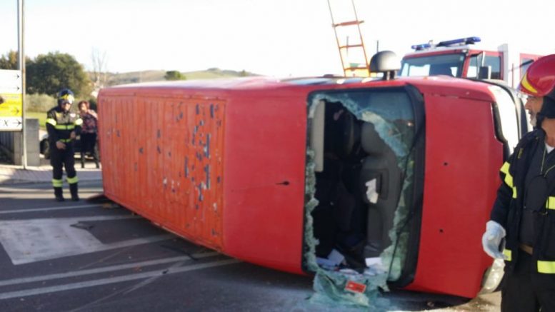 In seguito all’impatto il furgone si è ribaltato sul lato destro impedendo così al conducente di uscire dall’abitacolo.