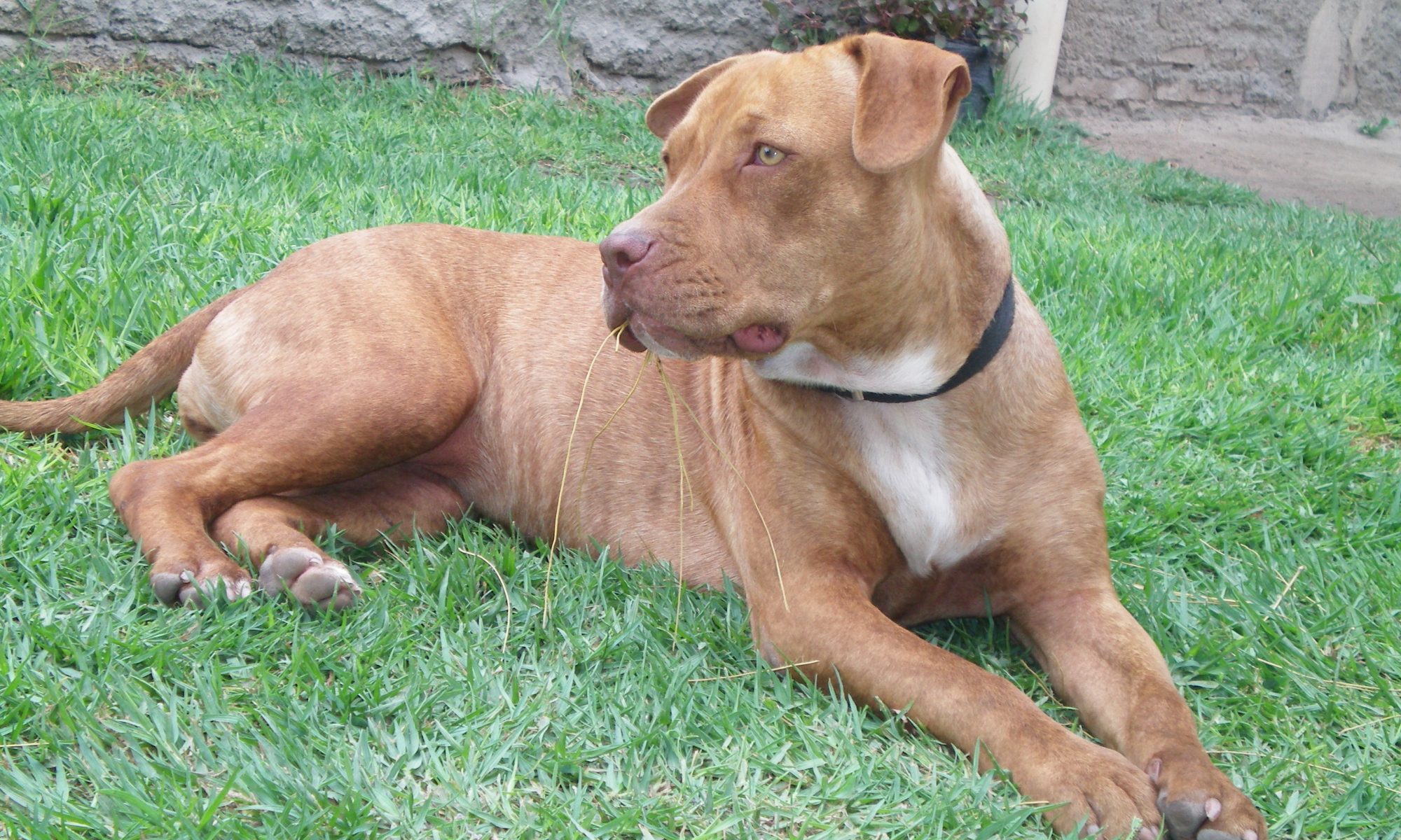 Il pitbull, morto dopo un intervento chirurgico, è stato infilzato con un forcone che gli ha perforato, presumibilmente, i polmoni.