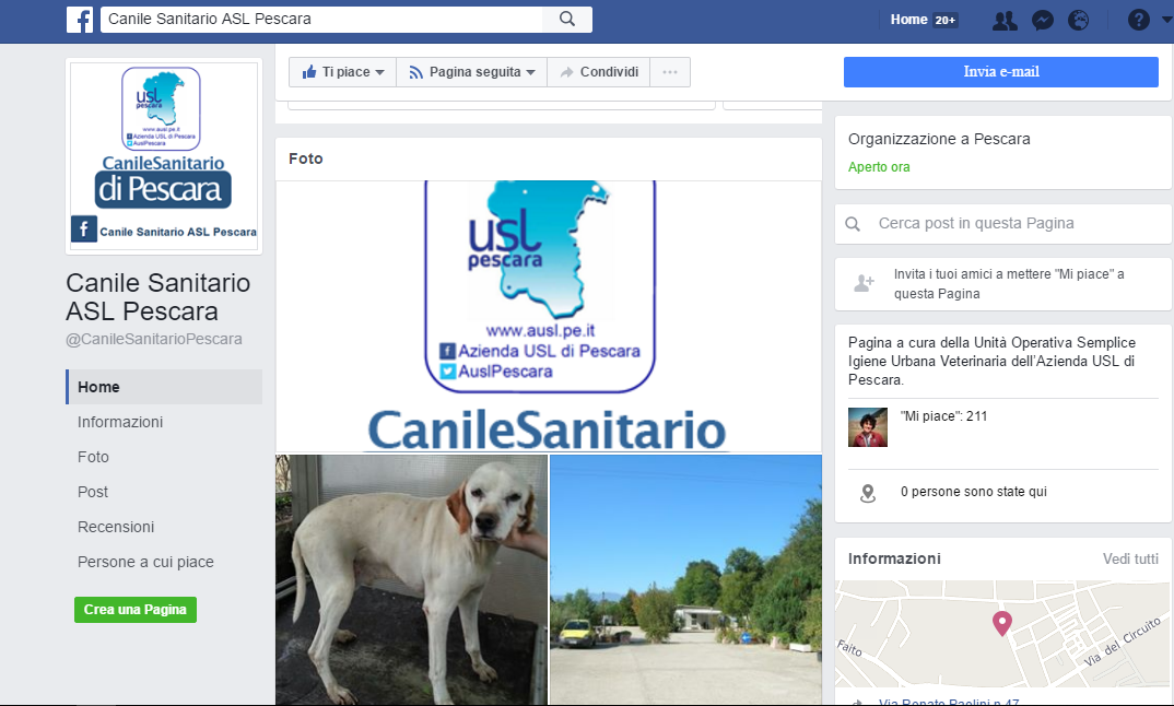 Dando per assodato che la pet terapy è spesso più efficace di alcuni farmaci e che gli animali a volte ci amano più delle persone, adottare un cane ed un gatto potrebbe essere di grande aiuto per la nostra salute psico-fisica. Il canile sanitario della Asl di Pescara, gestito da Lucio Di Tommaso della Unità Operativa Semplice Igiene Urbana Veterinaria, ha ufficialmente attivato la pagina sua Facebook. Chi desidera adottare un animale povrà contattare il servizio di sanità animale nei seguenti modi telefonando al numero 085 98 98 855 dal lunedì al sabato (orario 8.00-13.00) oppure scrivere alla e-mail sanimale.pescara@ausl.pe.it.